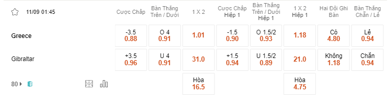 Trận mở màn trong ngày 11/9 này sẽ là kèo đấu tại bảng B vòng loại Euro giữa đội tuyển Hy Lạp và đội tuyển Gibraltar. Hiện tại ở bảng B thành tích của các đội đang có quá nhiều trái ngược khi được chia thành hai nửa là đội tuyển Pháp và các đội còn lại, trong đó Hy Lạp và Gibraltar đều đang nằm trong số còn lại của bảng đấu với thành tích không quá nổi bật. Hiện tại đội tuyển Hy Lạp đang thi đấu chậm lại trong những trận gần nhất khi sau 4 vòng đấu vừa qua toàn đội đang xếp tại vị trí thứ 3 cùng 6 điểm nhờ 2 chiến thắng đầu tay, trong đó cả hai lượt trận đầu Hy Lạp đều giành chiến thắng với kèo tài nổ ngày trong chiến thắng đầu tay 3-0 trước Hy Lạp cùng chiến thắng 2-1 trước Ailen, tuy nhiên hai trận gần nhất ra quân Hy Lạp có phần hụt hơi khi phải đối đầu với các đội mạnh tại bảng đấu khi liên tiếp để thua hai trận gần nhất 0-1 trước đội dẫn đầu Pháp cùng trận thua gần nhất với kèo tài lên tới 0-3 trước Hà Lan. Thời gian thi đấu khá hụt hơi đang khiến phong độ của cả đội đi xuống nhiều nhất là sau trận thua với Pháp, đội tuyển Hy Lạp đã mất đi vị trí trụ cột nơi hàng thủ bởi án treo giò của K. Mavropanos, vì điều này bắt buộc HLV Gus Poyet phải đưa ra những sự lựa chọn thay thế mới để chớm vào đội hình ban đầu tuy nhiên điều này cùng phần nào khiến Hy Lạp mất đi sự chắc chắn trong lối chơi của mình được thấy rõ ngay trọng trận thua trước Hà Lan. Dù vậy theo https://vuibongda.webnode.com trận đối đầu trở lại với Gibraltar sẽ là cơ hội tốt để Hy Lạp lấy lại phong độ sau chuỗi thua đáng tiếc vừa qua.