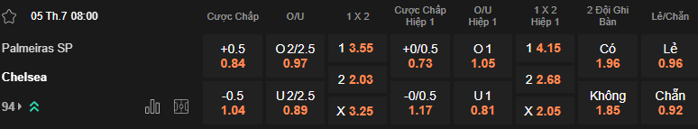 Bên phía Palmeiras họ chạm trán Botafogo đội bóng từng thắng 1-0 trước PSG tại vòng bảng với một tâm thế ngang tài ngang sức. Dễ thấy dù Palmeiras không kiểm soát bóng nhiều hơn đối thủ tuy nhiên đổi lại họ lại tạo ra nhiều tình huống nguy hiểm hơn với 19 cú sút và 5 tình huống bóng nguy hiểm, tuy nhiên cả hai đội đều kém duyên trong hiệp đấu chính thức và phải tới hiệp phụ số 10 của Palmeiras là P. Henrique Sampaio Filho mới có pha lập công để giúp Palmeiras có lợi thế dẫn trước, tuy cuối trận Palmeiras phải nhận thẻ đỏ từ vị trí của G. Gomez tuy nhiên họ vẫn thành công để lọt vào tứ kết một cách nghẹt thở. Tới đây nhìn vào tổng quan hai đội có thể dễ thấy Chelsea chiếm ưu thế hơn rất nhiều không chỉ về lực lượng và còn về tâm lý khi mới đây họ được giải tỏa rất nhiều sau chiến thắng đậm, đổi lại Palmeiras vốn không phải là một đội thủ thực sự ngang tầm so với The Blues. Hiện các chuyên gia từ Hướng dẫn cá cược bóng đá lựa chọn Chelsea đang là kết quả uy tín cho kèo chấp 0.5 FT.
