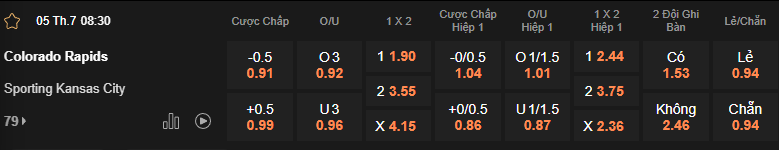 Colorado và Sporting KC sẽ là cặp đấu cuối cùng trong ngày 5/7 này diễn ra tại vòng 21 giải MLS. Nhận định về kết quả đối đầu trong vòng 3 lần gặp nhau gần nhất của hai đội, có thể thấy Colorado hiện đang có phần nhỉnh hơn khi họ đạt được 2 chiến thắng và để thua 1 trận trước Sporting KC và có vỏn vẹn 1 trận trong số đó nổ kèo Tài 3 FT. Nhận định về khả năng nổ kèo Tài Xỉu, xét trong 5 trận ra sân gần nhất cả Colorado và Sporting đều có vỏn vẹn chỉ 1/5 trận đạt kèo Tài 3 FT với đồng 3 bàn/hiệp. Dựa trên khả năng nổ kèo đều ở mức thấp của hai đội thid tới đây theo các chuyên gia nhận định nhiều khả năng kèo Xỉu 3 FT là lựa chọn sáng giá cho các nhà đầu tư.
