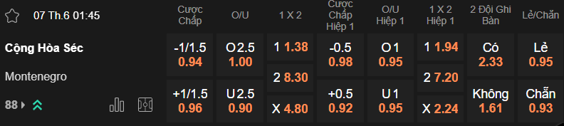 CH Séc và Montenegro sẽ là cặp đấu tiếp theo diễn ra trong ngày 7/6 này tại bảng L VL World Cup trên sân Doosan Arena. Hiện tại sau 2 vòng đấu vừa qua về thành tích của hai đội, hiện cả hai đội đều đang có đồng 6 điểm với 2 chiến thắng liên tiếp trong đó CH Séc có cho mình điểm hệ số nhỉnh hơn giúp họ vươn lên vị trí top 1 và Montenegro đứng phía dưới ở vị trí top 2. Xét trong vòng 5 lần ra sân trở lại đây về khả năng nổ kèo Tài Xỉu, CH Séc hiện đang có cho mình 1/5 trận nổ kèo Tài 2.5 FT với tổng 4 bàn/trận, bên kia Montenegro nhỉnh hơn với 2/5 trận đạt kèo Tài với bình quân 3 bàn/trận, xét trong cả 2 lần chạm trán gần nhất CH Séc đều giành chiến thắng với kết quá trung bình họ ghi được 4 bàn/trận trước Montenegro nổ kèo Tài 2.5 FT. Dựa trên khả năng nổ kèo trước đó của hai đội, chuyên gia soi kèo xiên đêm nay nhận định kèo Tài 2.5 FT là kết quả khả thi trong trận đấu này.