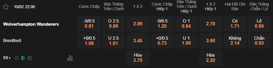 Nhận định soi kèo xiên hôm nay 10/2 Wolves vs Brentford, EPL