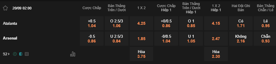 Nhận định soi kèo xiên thơm 20/9 Atalanta vs Arsenal, C1