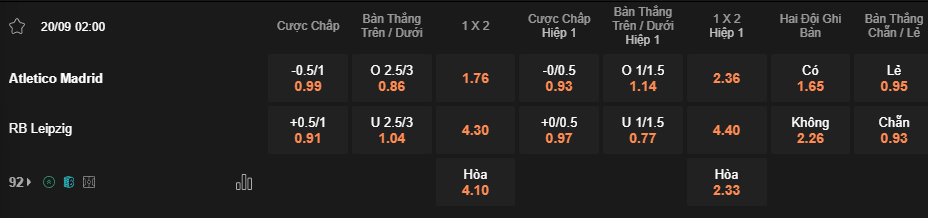 Nhận định soi kèo xiên thơm 20/9 Atletico Madrid vs RB Leipzig, C1