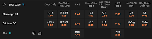 Soi kèo Flamengo vs Criciuma lúc 02h00 21/7 - Brazil Serie A