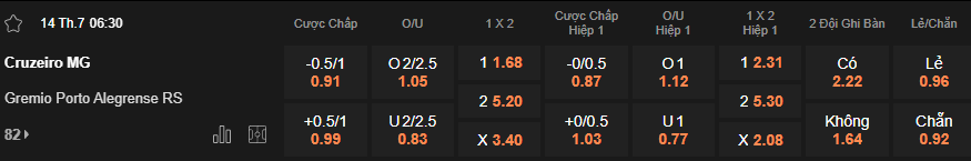 Cũng tại vòng đấu thứ 13 thuộc giải VĐQG Brazil, tới đây trận so tài tiếp theo diễn ra trong ngày 14/7 đó là trận đấu giữa Cruzeiro vs Gremio trên sân Mineirao. Ở thời điểm hiện tại sau 12 lần ra sân, có thể thấy Cruzeiro đang đứng ở vị trí cao hơn tại top 2 với tổng 24 điểm sau 12 trận, ngược lại Gremio tụt xuống top 11 với 16 điểm. Xét về khả năng nổ kèo Tài Xỉu, với Cruzeiro trong vòng 5 trận ra sân gần nhất họ có cho mình 1 trận nổ kèo Tài với tổng 2 bàn/trận, về phía Gremio đang có 2/5 trận nổ kèo với bình quân 2 bàn/trận, ngoài ra trong vòng 3 lần chạm trán gần nhất của hai đội đã có tới 2 trận nổ kèo Tài 2/2.5 FT. Cân nhắc dựa trên khả năng nổ kèo Tài Xỉu từ các lần đối đầu trước đây của hai đội, theo kèo xiên hôm nay lựa chọn kèo Tài 2/2.5 FT là kết quả của trận đấu này.