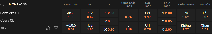 Fortaleza và Creara tại vòng 13 giải VĐ Brazil sẽ là vòng đấu cuối cùng của chuỗi kèo xiên ngày 14/7. Xét về khả năng đối đầu của hai đội trước đây, trong 3 lần đối đầu gần nhất Ceara đều là đội có được kết quả tốt với 3/3 trận thắng và có 1/3 trận nổ kèo Tài 2 FT. Về khả năng nổ kèo Tài Xỉu trong 5 trận gần đây của hai đội, Fortaleza chưa có trận nào đạt Tài 2 FT với bình quân họ ghi được từ 1 bàn/trận trở xuống, bên kia Ceara có 1/5 trận nổ kèo Tài 2 FT với tổng 2 bàn/trận. Theo các chuyên gia soi kèo xiên, từ khả năng nổ kèo của hai đội thì tới đây kết quả kèo Xỉu 2 FT là lựa chọn hợp lý nhất cho nhà đầu tư.