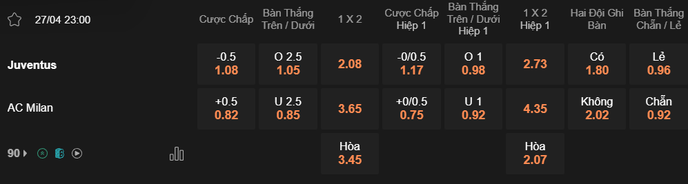 Soi kèo xiên hôm nay 27/4 Juventus vs AC Milan, Serie A