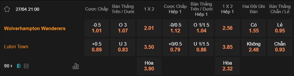 Soi kèo xiên hôm nay 27/4 Wolves vs Luton, EPL