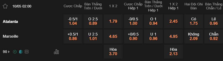 Atalanta và Marseille cũng sẽ có màn so tài quyết định tấm vé vào chung kết Europa League năm nay trong ngày 10/5 này. Trước đó trận hòa 1 đều là kết quả cuối cùng trong lượt đấu đầu tiên giữa Atalanta và Marseille qua đó nổ Xỉu dưới 2.5 FT, tuy nhiên xét về phong độ đạt kèo khả năng nổ kèo 2.5 FT của hai đội khá thấp khi chỉ có Atalanta là đội có duy nhất 1 trận đạt Tài 2.5 FT trong vòng 5 lần ra sân trở lại đây. Với thành tích nổ kèo không quá ấn tượng, các chuyên gia soi kèo xiên đánh giá Kèo Xỉu 2.5 FT sẽ là lựa chọn kèo thích hợp nhất.